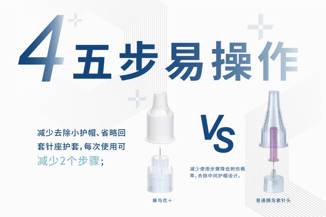 五步可操作:减少去除小针帽,省略回套针座护套,每次使用可减少2步。