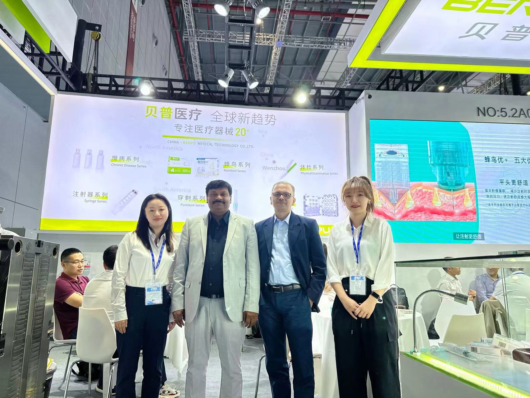 除此之外,贝普还带来了多款行业领先的医疗产品,包含贝普蜂鸟系列、热流道模具、低残留注射器、采血管等,吸引了众多海外客户前来参观、洽谈业务。
